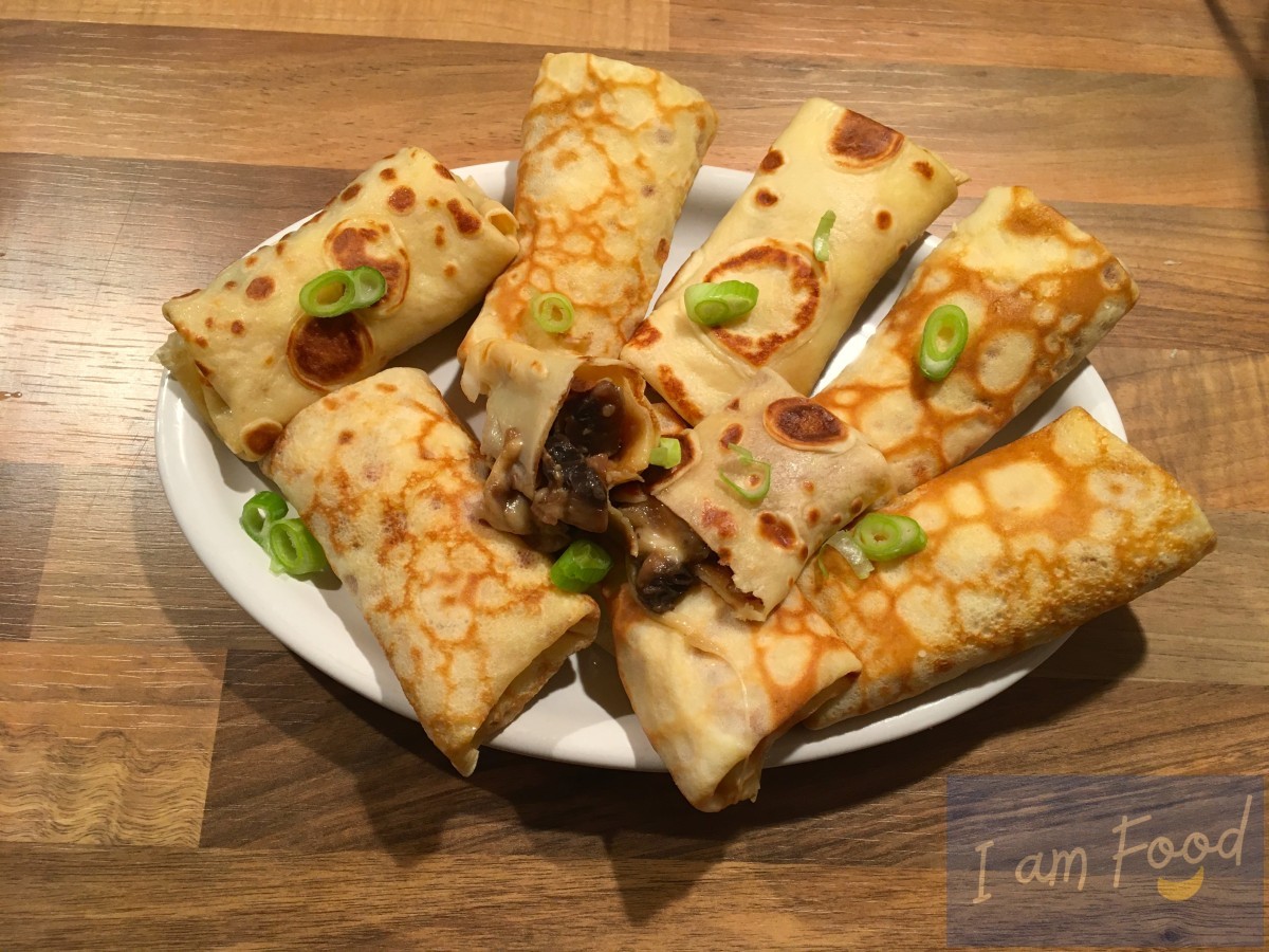 (Mlyntsi) Pannenkoek met kip, champignons, ui en kaas op Oekraïense wijze